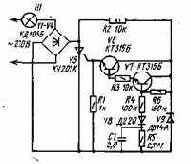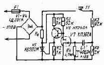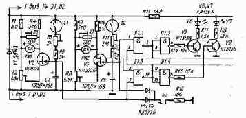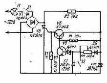 Времязадающий узел собран на транзисторе V6 и конденсаторах СЗ, С4. Транзистор V7 и стабилитрон VII составляют цепь обратной связи.